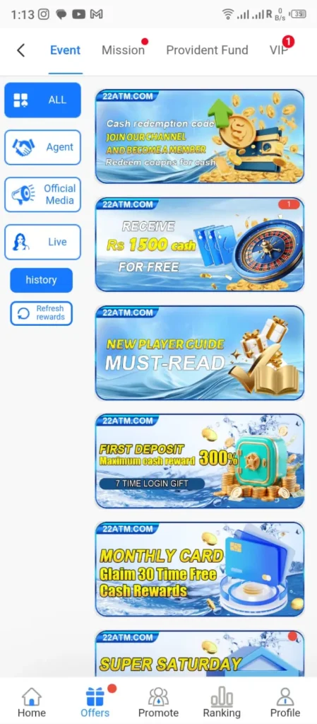 22ATM Game has a very easy-to-use interface. Users can navigate menus, find games, and check rewards without confusion.